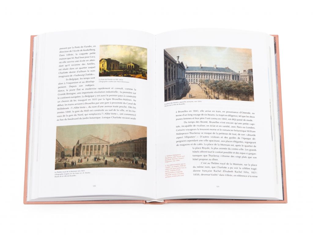 Âgées d’une petite vingtaine d’années, toutes deux souhaitent perfectionner leurs connaissances en langues, principalement en français, en vue d’ouvrir une école pour jeunes filles en Angleterre. Le « pensionnat de demoiselles Héger-Parent » les accueille ; Emily y demeurera un an et Charlotte deux. Bien que brève, cette expérience bruxelloise jouera un rôle majeur, tant dans la vie que dans l’œuvre des sœurs Brontë. Pour Charlotte surtout, dont le secret attachement pour son professeur et cette vie loin des siens seront à l’origine aussi de deux livres : Le Professeur et Villette. Riche de nombreux extraits (lettres, devoirs, poèmes et écrits) et d’une iconographie choisie, cet ouvrage original retrace le séjour à Bruxelles de deux immenses talents de la littérature prêts à éclore. S’y révèle aussi, en filigrane, le portrait d’une ville européenne, capitale de la Belgique ; un tout jeune pays, créé à peine dix ans plus tôt.