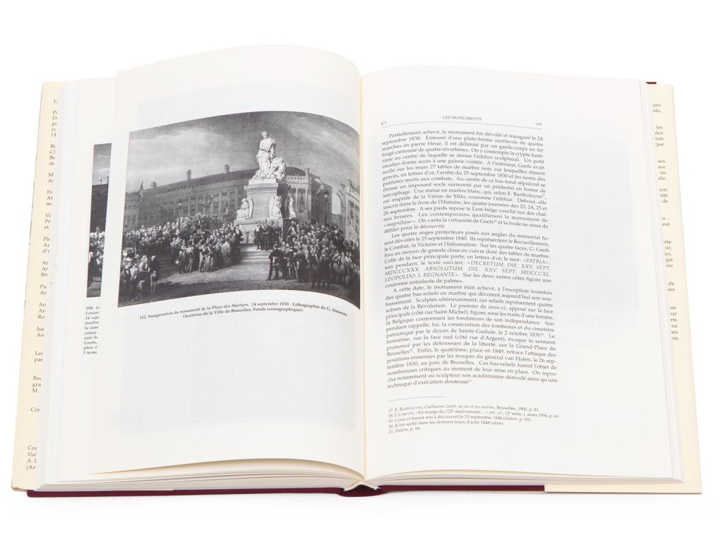 Après la révolution de 1830, on inhuma les héros des Journées de septembre sous les pavés de la place Saint-Michel. Celle-ci devint alors la place des Martyrs, un des hauts lieux de célébration de l'identité nationale. Première monographie sur le sujet, cet ouvrage présente aussi une somme de réflexions sur la mutation d'une ville, sur l'évolution des supports qui fixent la mémoire collective, sur une certaine vision de l'Europe des cultures ou encore sur les pratiques de conservation et de restauration du patrimoine architectural engagées par notre société.